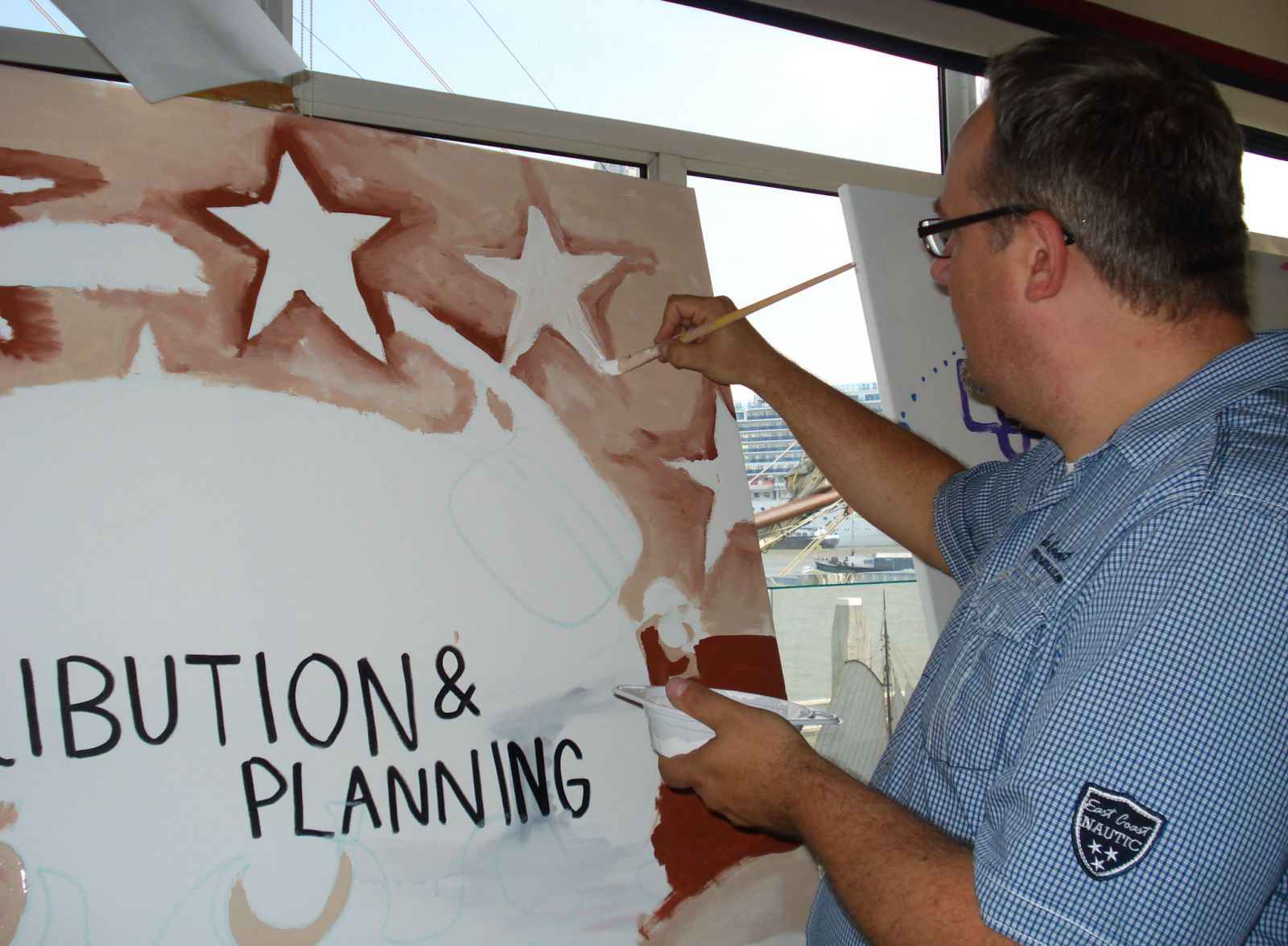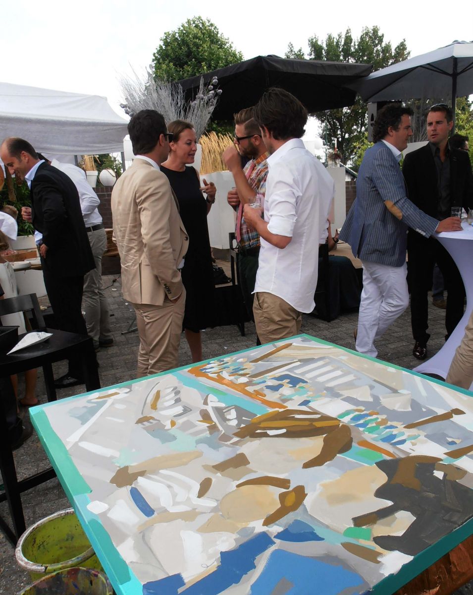 Bij locatie Harbour Club in Scheveningen het bruiloftsdiner live schilderen.