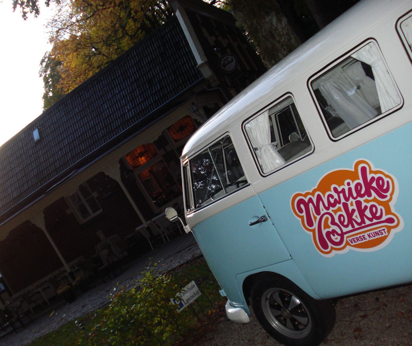 Herftstinten, VWtrouwauto, black dress en schattig theehuis als decor.