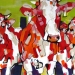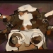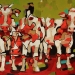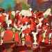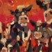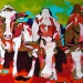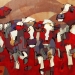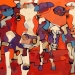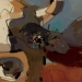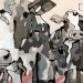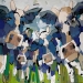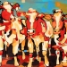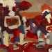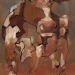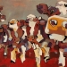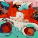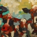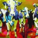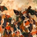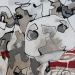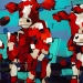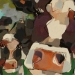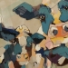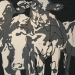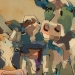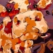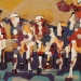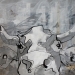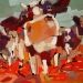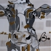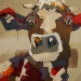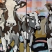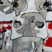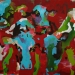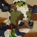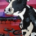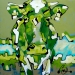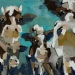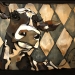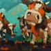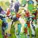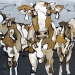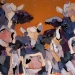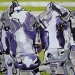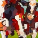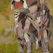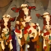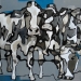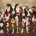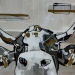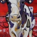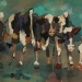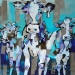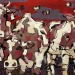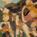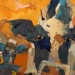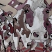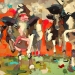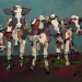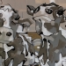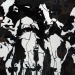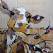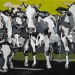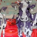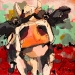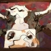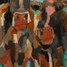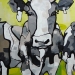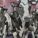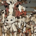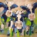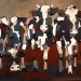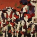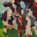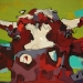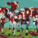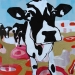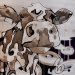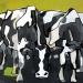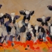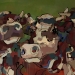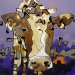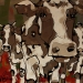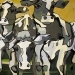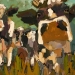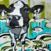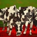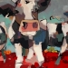 Tweeluik met bont gekleurde koeien. Op het linkerdoek staan 2 koeien en op het rechterdoek 1grote koeienkop en 2 koeien in de verte. verkocht