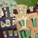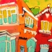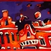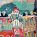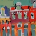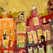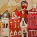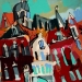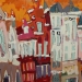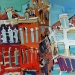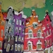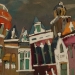Het Wilde Westen verwijst naar enerzijds de vlugge en rake schildertechniek en anderzijds de steden waar deze ''uppie'' op is gebasseerd. Van links naar rechts: Delft, Alkmaar markt Leiden, Alkmaar platte, Amsterdam cafe de Sluyswacht, Delft drie touristische huisjes. verkocht
